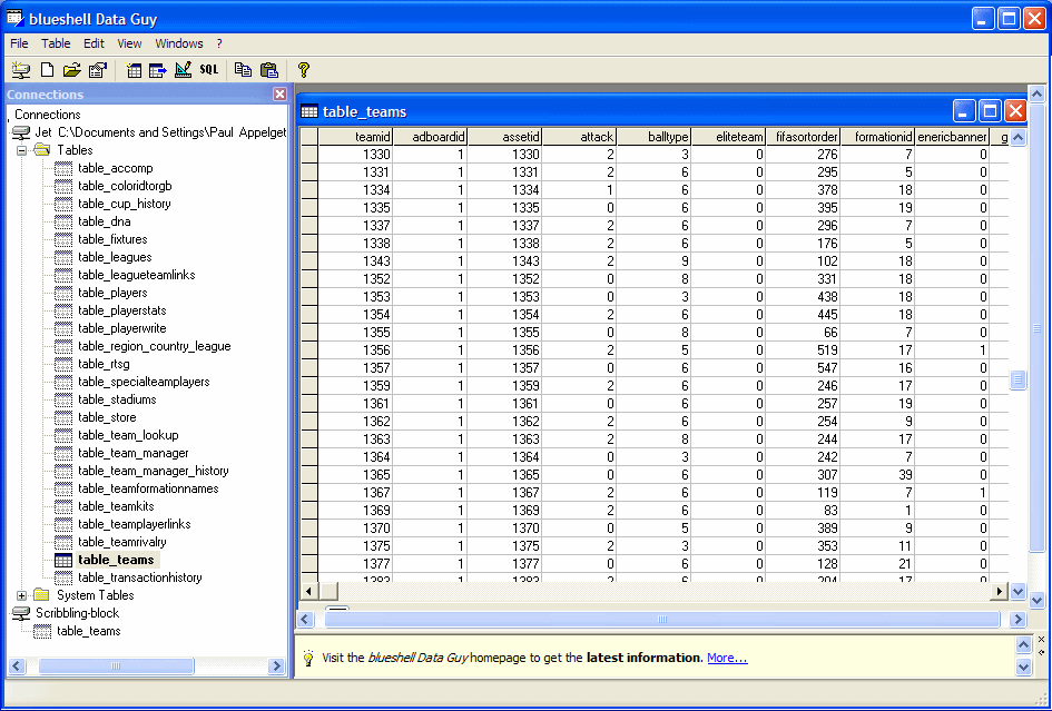 Now let's edit your first table. Let's start with table_leagueteamlinks. Open the table
