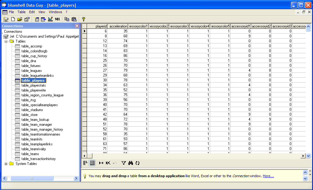 table_playerwrite has the names of the players in it. Let's start there. So let's open it.