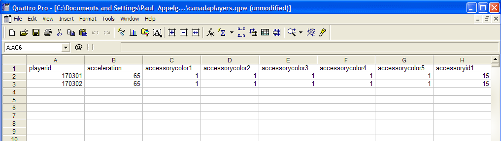 accessoryid1,2,3,4,5 You can add accessories. No accessories is number "0". I think if put "1" you will have a certain accessory. If you want that you'll have to figure that one out. I think that there are five accessories in the game. But I'm just guessing. Put "0" for now. You won't have accessories to start. I don't want them, so I'll just put "0". If you see a player in the game with an accessory you want to add. Look up the data on that player, then you can add that info with whatever new player you want to create.