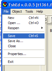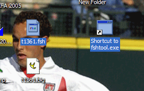 Now I'm ready to import this graphic back into t1361.fsh. In order to do this you need to use the program FshEd.exe. Open FshEd and open the t1361.fsh on the desktop.